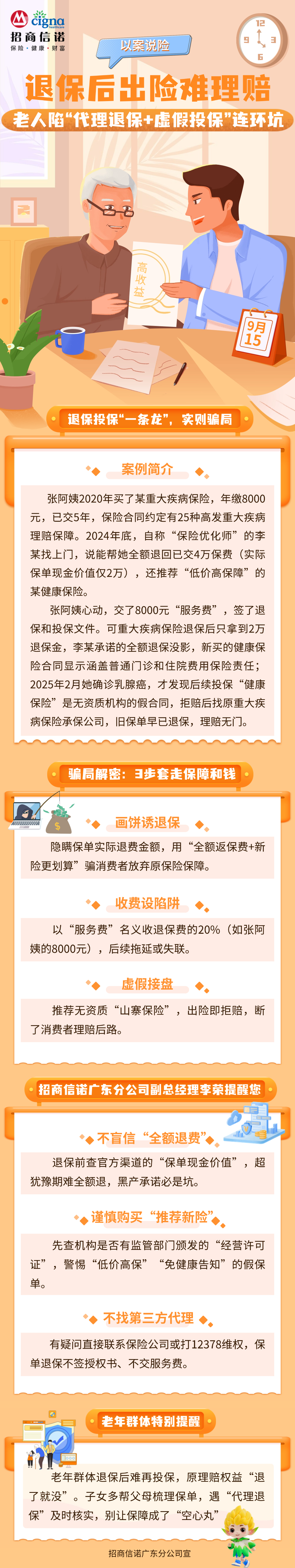 招商信诺广东分公司宣:退保后出险难理赔!老人陷代理退保+虚假投保连环坑