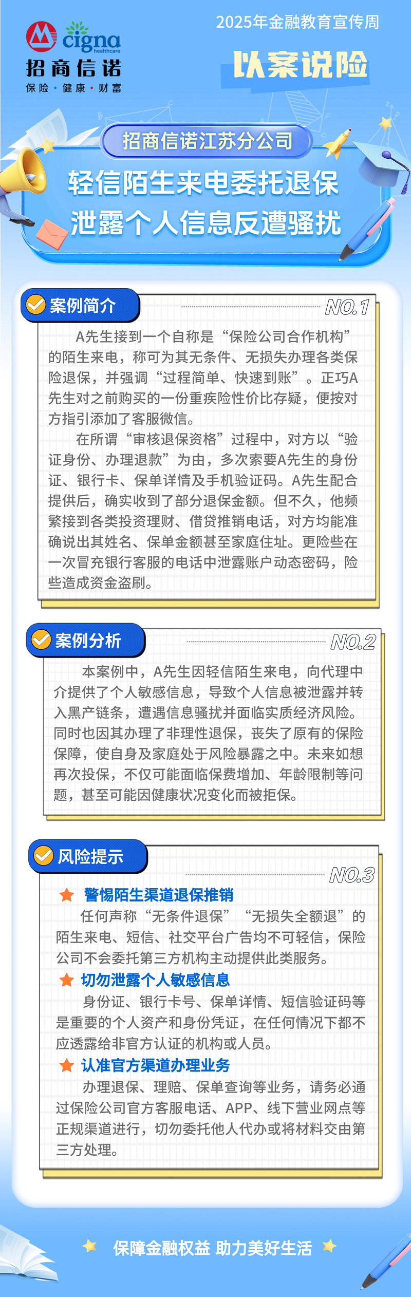 【以案说险】轻信陌生来电委托退保,泄露个人信息反遭骚扰——招商信诺江苏分公司宣