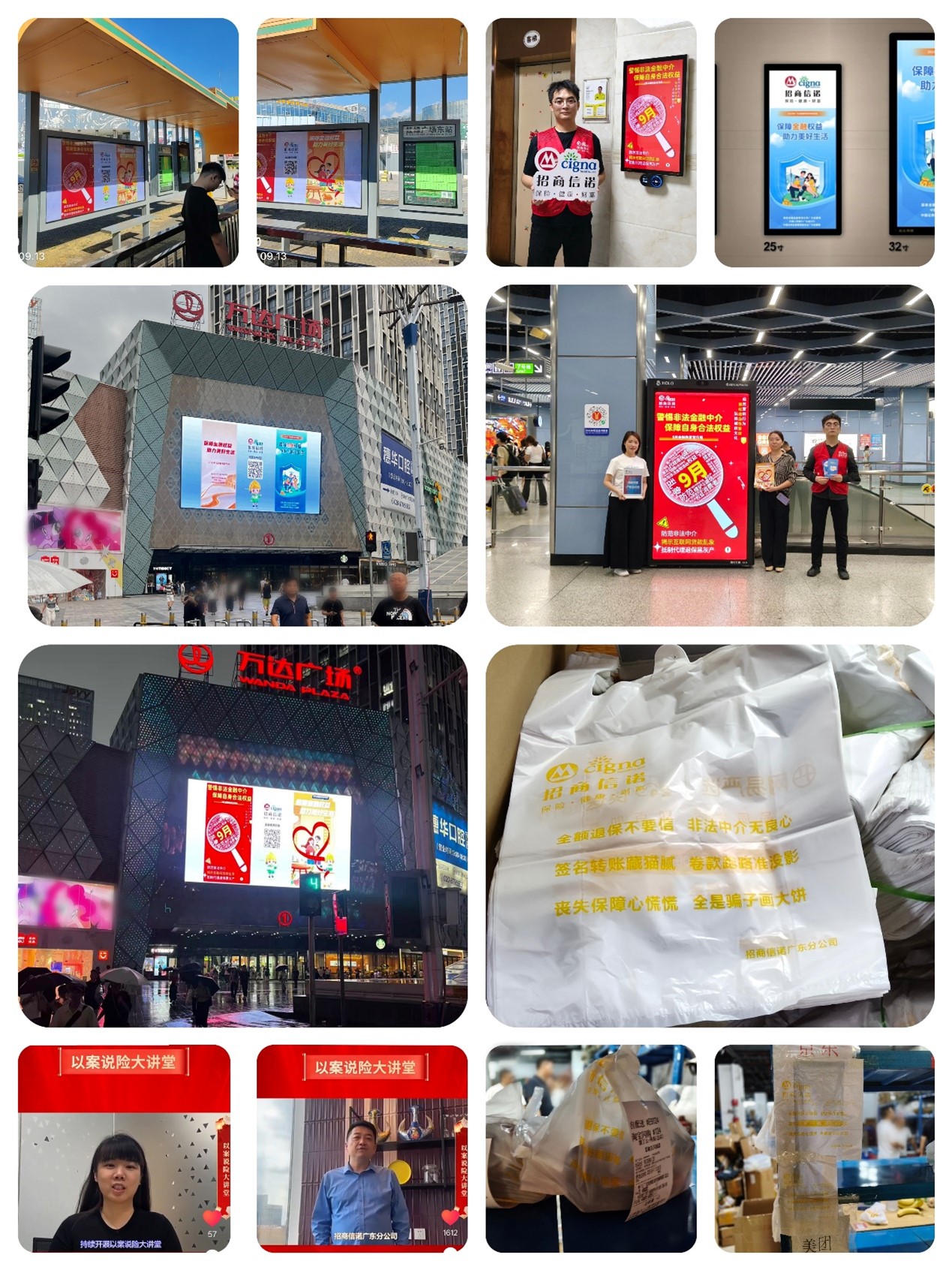 本次活动打破传统宣传壁垒,构建“线下+线上+到家”融合传播网络延伸金融教育宣传触角。在番禺万达商圈户外大屏滚动播放金融素养问答,以互动形式激发市民学习热情,实现“金融素养问答齐提升”。在增城挂绿公交站海报深入县域区域,推动金融教育下沉,助力“县域居民齐参与”。在南村万博地铁站内精准投放风险提示内容,将防骗指和风险提示知识“送入手”“映入眼”。在越秀、天河、番禺、海珠、白云、增城六大区域,200个电梯楼宇智能电子终端机,形成“金融教育网格化”,让风险提示融入日常出行场景。同时联合电商超市创新举措,携手主流电商平台,将印有“全额退保要警惕,个人信息勿轻弃”、“诈骗手段日日新,大家务必要小心”等醒目警示语的购物袋,随美团、饿了么、京东等平台的日常订单配送至千家万户。让每一个小小的购物袋都成为传播金融知识的“移动宣传站”,精准直达消费者手中,于细微处渗透风险意识,构筑起一道“点对点”的金融安全防护网。