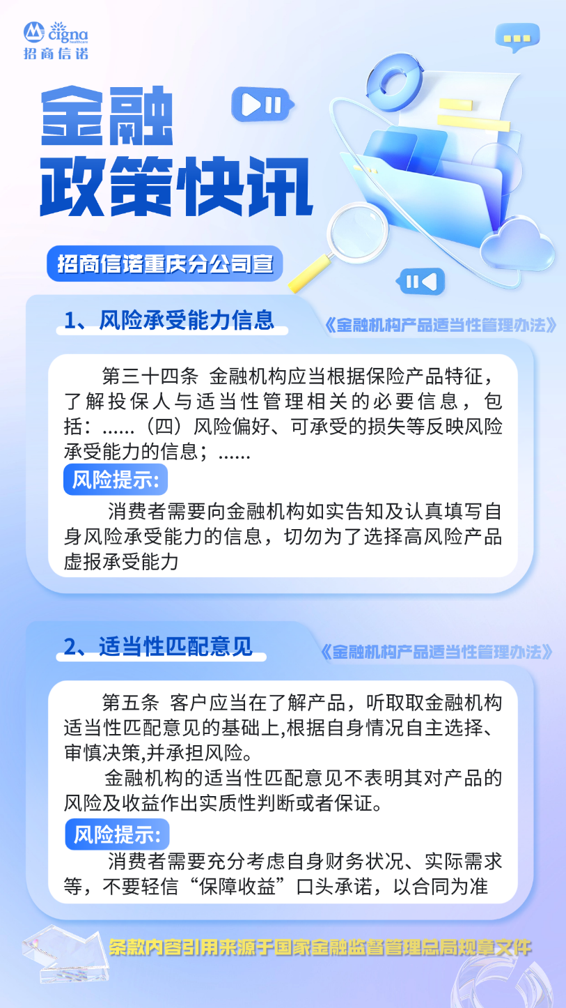 风险提示|了解适当性管理规定 招商信诺重庆分公司提醒您:认真填写风险承受能力信息,仔细阅读合同条款