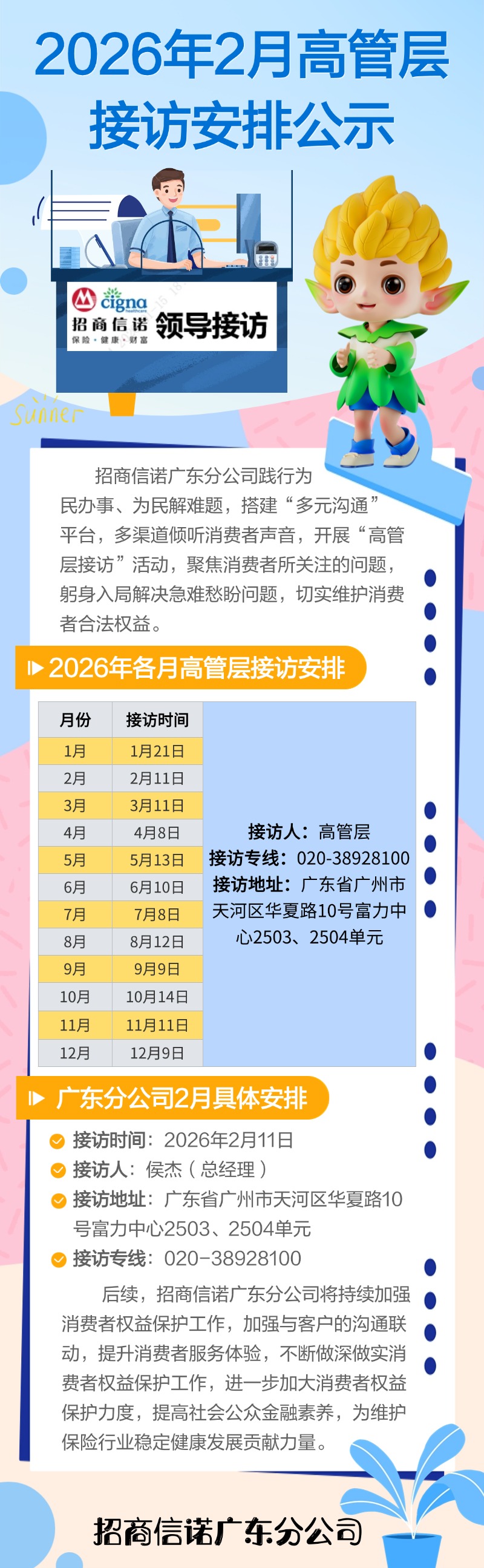 广东分公司2026年2月高管层接访安排公示【招商信诺广东分公司】