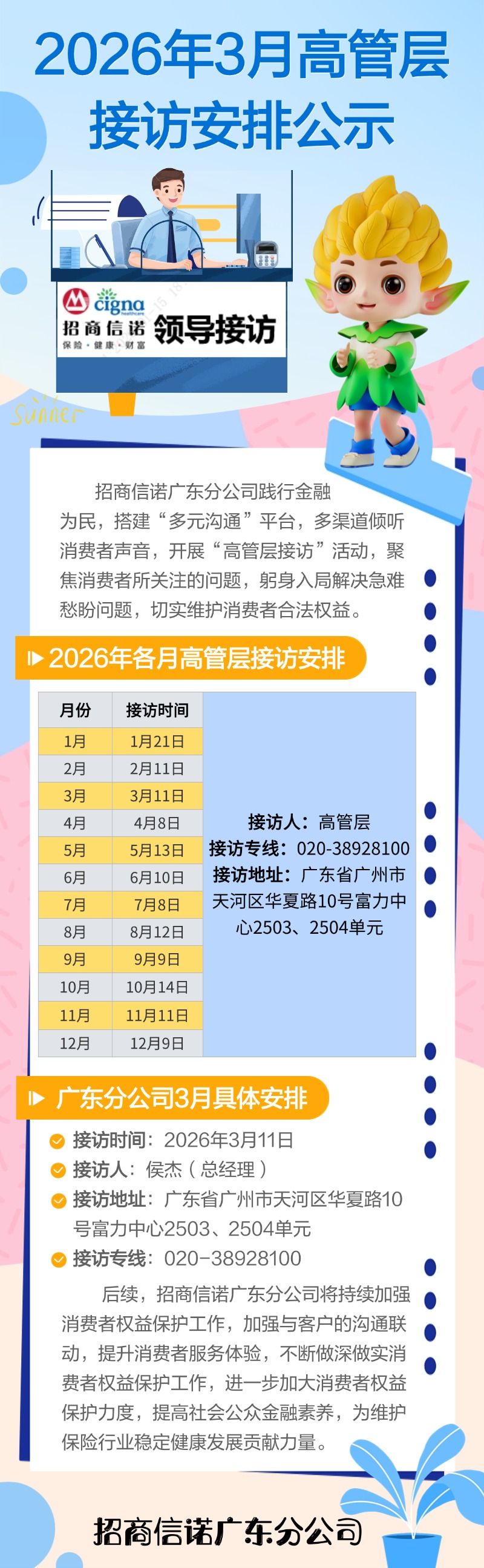 2026年3月高管层接访安排公示【招商信诺广东分公司】