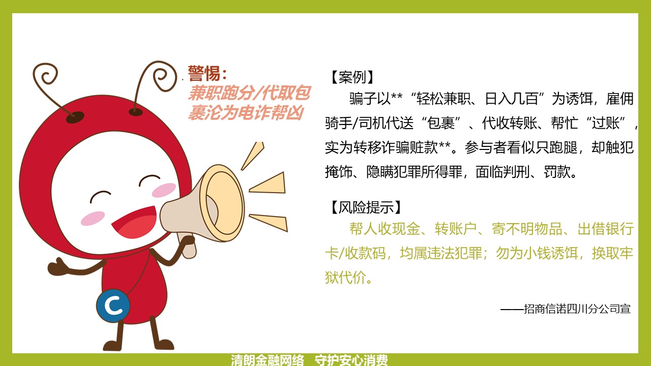 兼职跑分代取包裹沦为电诈帮凶【招商信诺四川分公司】