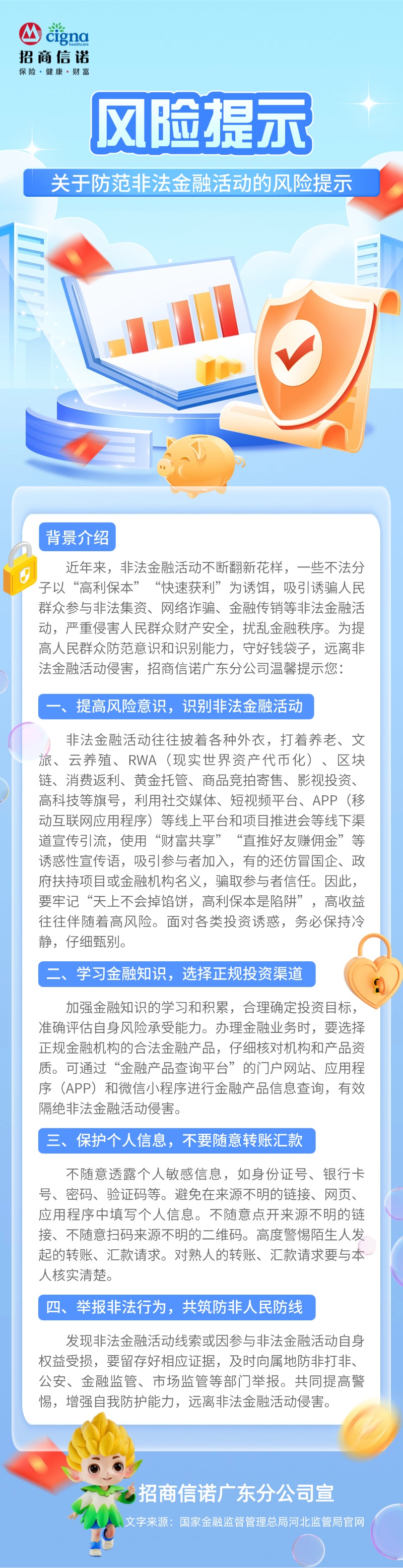 关于防范非法金融活动的风险提示(转发)——招商信诺广东分公司
