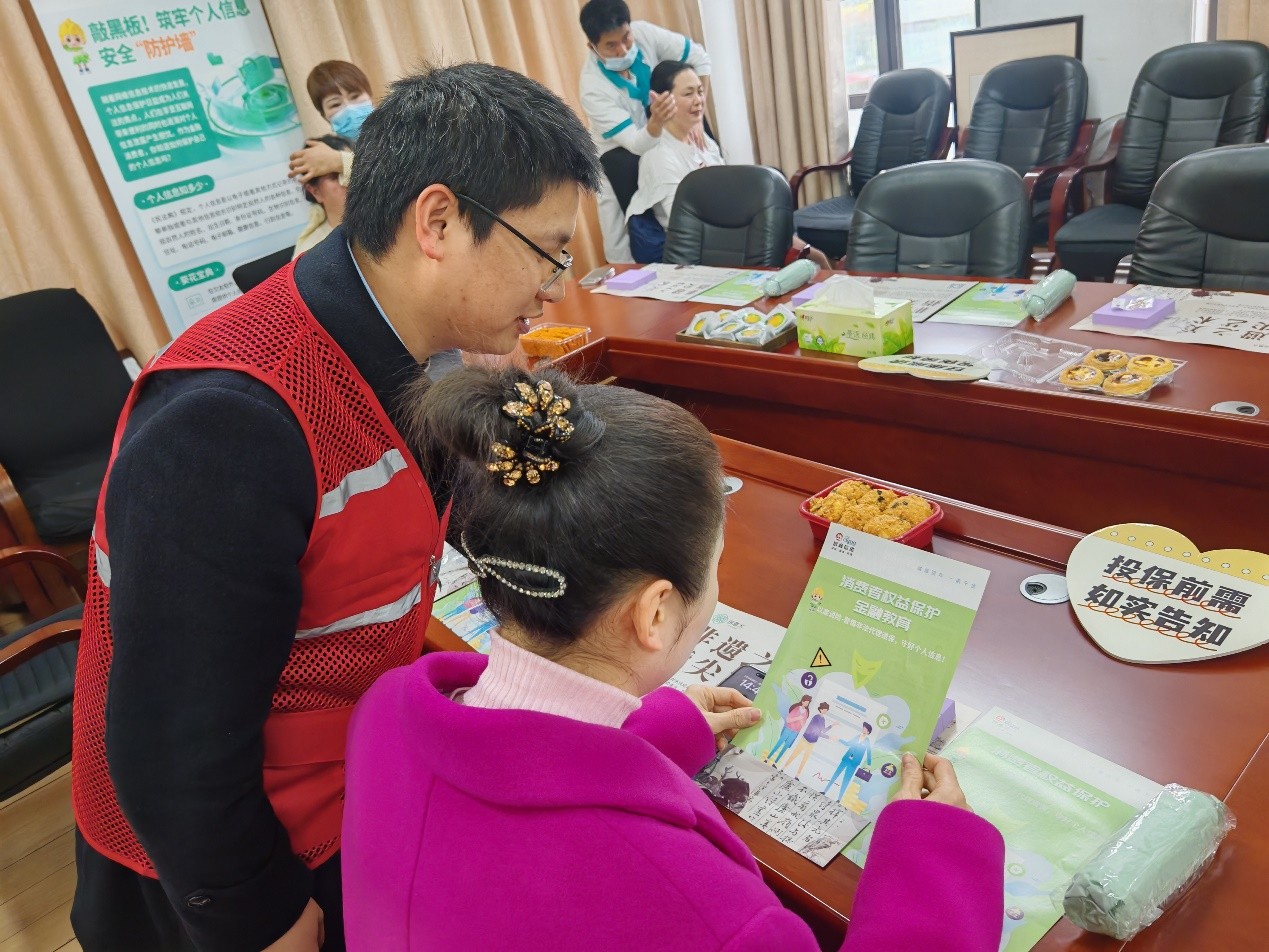 现场安排工作人员进行金融公益知识宣传,通过面对面的案例剖析风险陷阱讲解、互动答疑等方式,耐心的向企业员工普及消费者权益保护知识,发放宣传资料,有效帮助大家增强风险识别能力,筑牢金融安全防线。