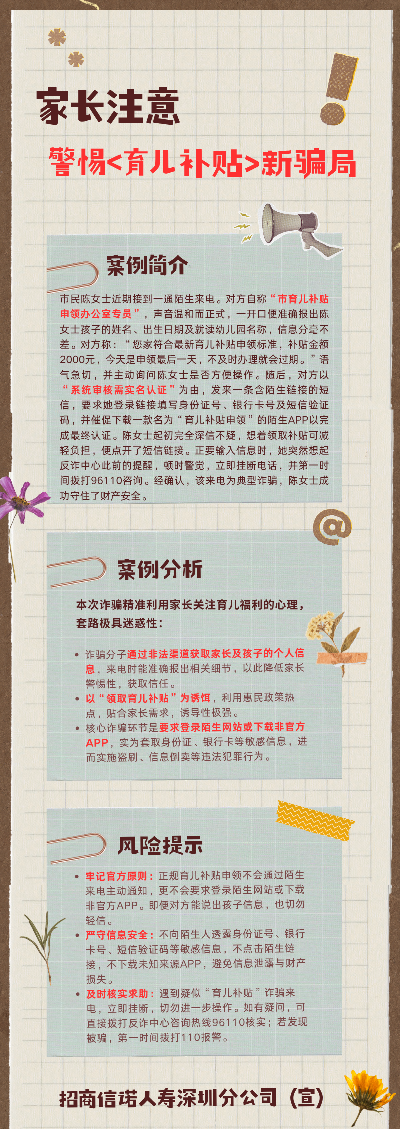 【风险提示】家长注意 警惕<育儿补贴>新骗局——招商信诺人寿深圳分公司