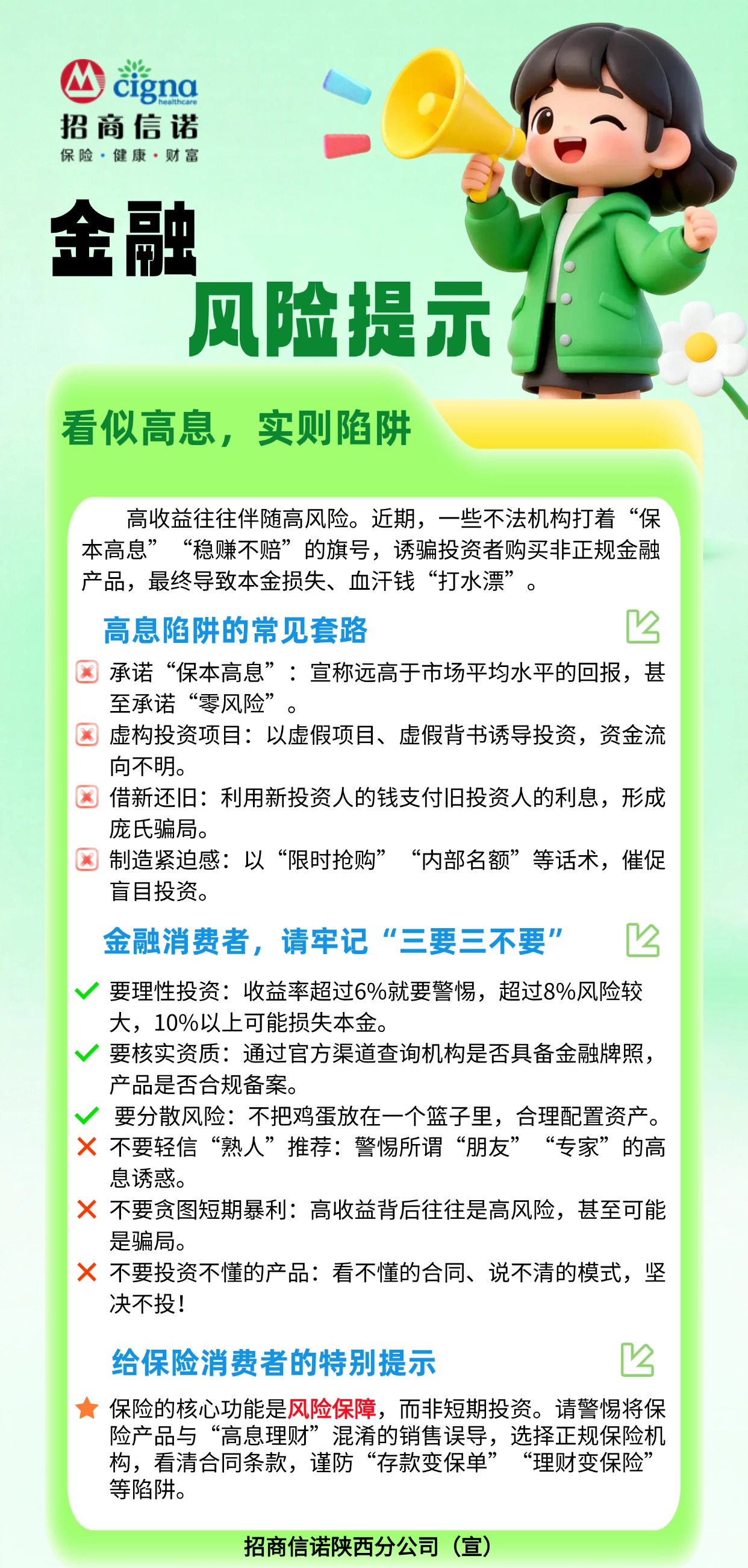 【风险提示】看似高息,实则陷阱金融风险提示——招商信诺陕西分公司
