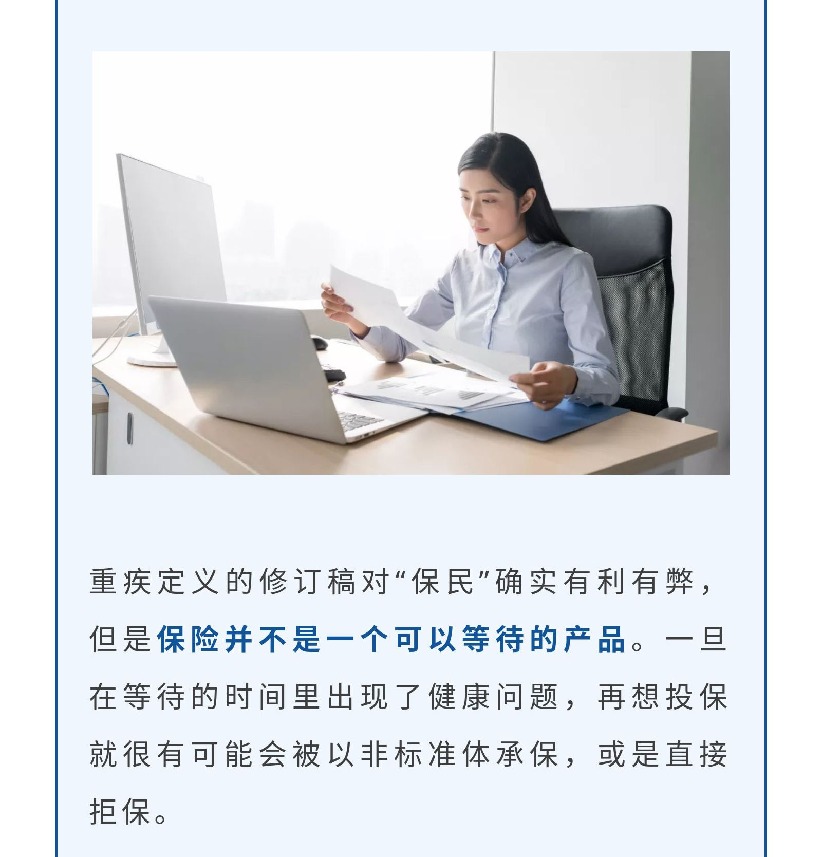 摘要:此次重疾定义修订稿,对我已经购买的保险会不会受到影响?需不需要赶在新规落地之前抢购重疾险呢?