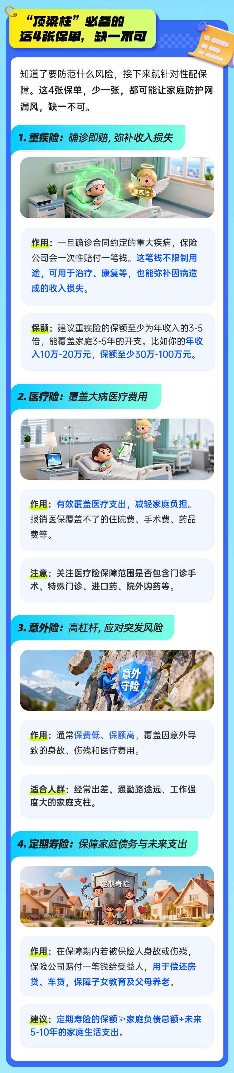 家庭“顶梁柱”的4张保单,缺一不可!速查你的保障配齐了吗?
