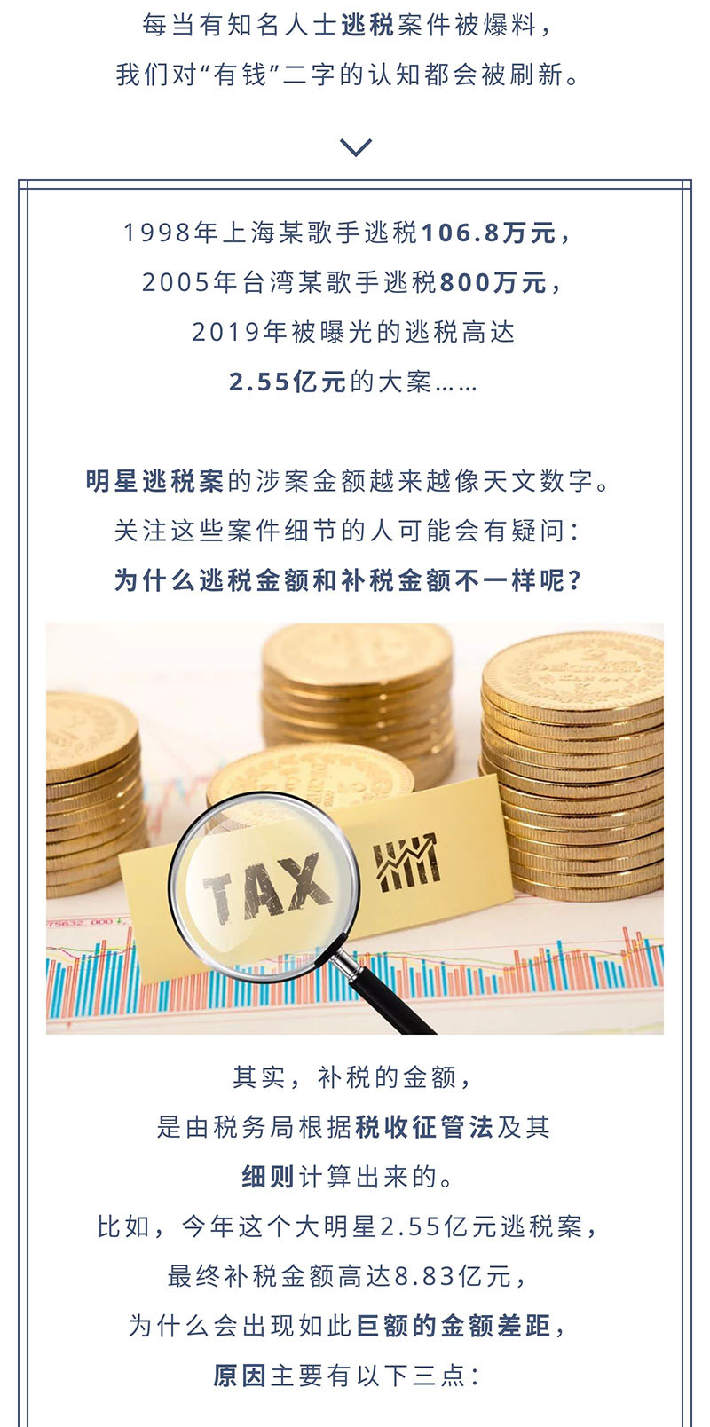 摘要:明星逃税案的逃税金额和补税金额为什么不一样?